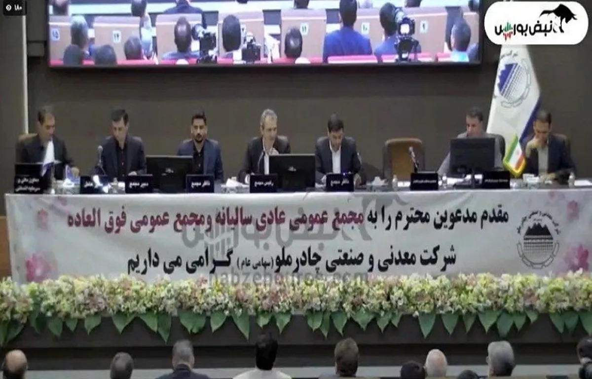 به گزارش نبض بورس، امروز دوشنبه ۲۳ تیرماه ۱۴۰۴ مجمع عمومی عادی سالیانه شرکت معدنی و صنعتی چادرملو با حضور بیش از ۷۴ درصد سهامداران برگزار شد. در این مجمع گزارش فعالیت هیئت مدیره منتهی به ۳۰ اسفندماه ۱۴۰۴، گزارش حسابرس، سوالات سهامداران و مصوبات مجمع مورد بررسی قرار گرفت: