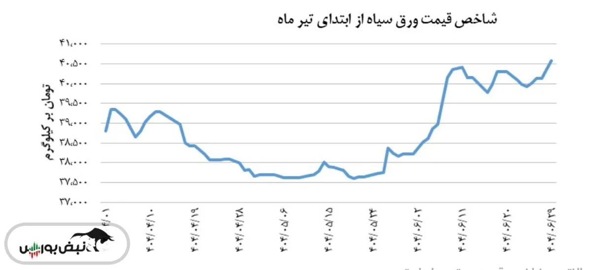 به گزارش نبض بورس، شاخص قیمتی ورق سیاه بدون ارزش افزوده، دیروز ۲۹ شهریور، برابر با ۴۰,۵۸۲ تومان به ازای هر کیلوگرم گزارش شد. این رقم نسبت به ۲۷ شهریور (روزی که شاخص قیمت برای آخرین بار گزارش شده است) که در آن روز شاخص قیمت در سطح ۴۰,۱۲۶ تومان به ازای هر کیلوگرم بود، حدود ۱٫۱ درصد رشد داشت. لازم به ذکر است که شاخص قیمت ورق سیاه نسبت به هفته پیش حدود ۱٫۱ درصد افزایش داشت.