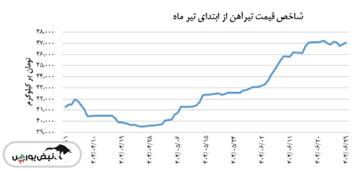 از ابتدای سال نیز شاخص قیمت تیرآهن، روندی صعودی داشت؛ به طوری که طی این دوره شاخص قیمت این محصول در سطح ۳۹,۸۰۳ تومان بر کیلوگرم قرار داشت که حاکی از رشد ۱۸٫۲ درصدی شاخص قیمت از ابتدای سال است. طی این دوره، بالاترین سطح شاخص مذکور در ۲۲ شهریور، و در سطح ۴۷,۲۲۶ تومان بر کیلوگرم ثبت شد. در مقابل، کمترین میزان از شاخص قیمت عنوان شده در ۱۱ اردیبهشت، و در سطح ۳۶,۲۸۴ تومان بر کیلوگرم به وقوع پیوست. بر اساس سطوح بیشینه و کمینه ذکر شده، دامنه نوسان شاخص قیمت تیرآهن، از ابتدای سال، به حدود ۱۰,۹۴۲ تومان بر کیلوگرم میرسد./فلزات آنلاین