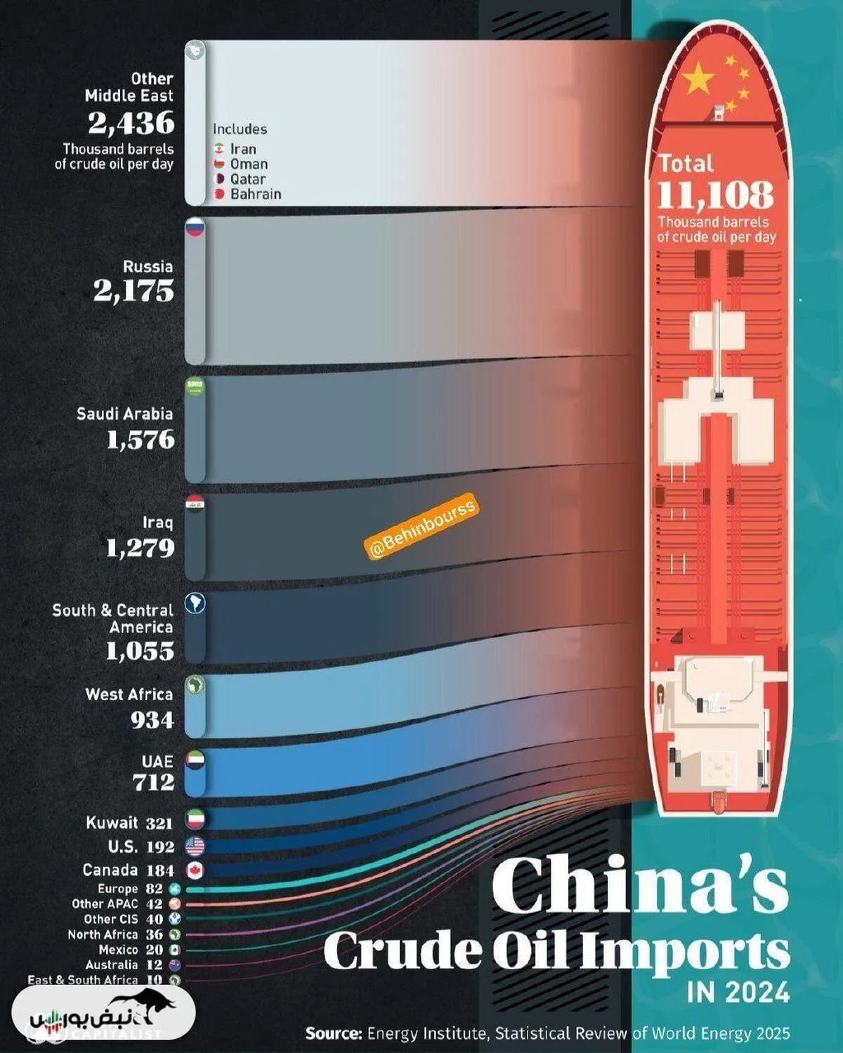 به گزارش نبض بورس، روسیه با ۲.۲ میلیون بشکه در روز بزرگترین تأمینکننده نفت چین بود و تقریباً یک پنجم کل واردات چین از این کشور تأمین شد.