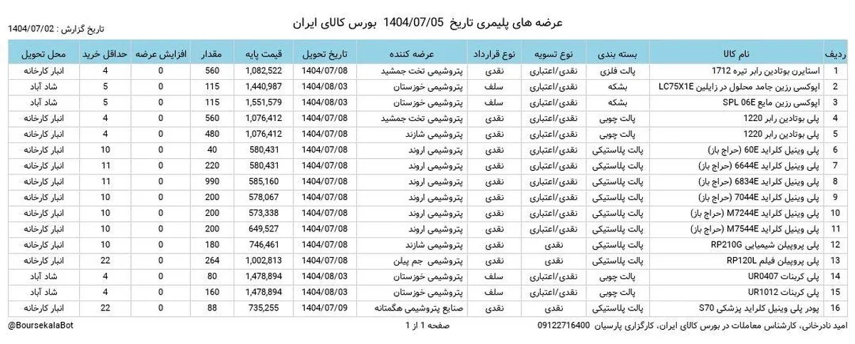 عرضه های محصولات پلیمری در بورس کالا
