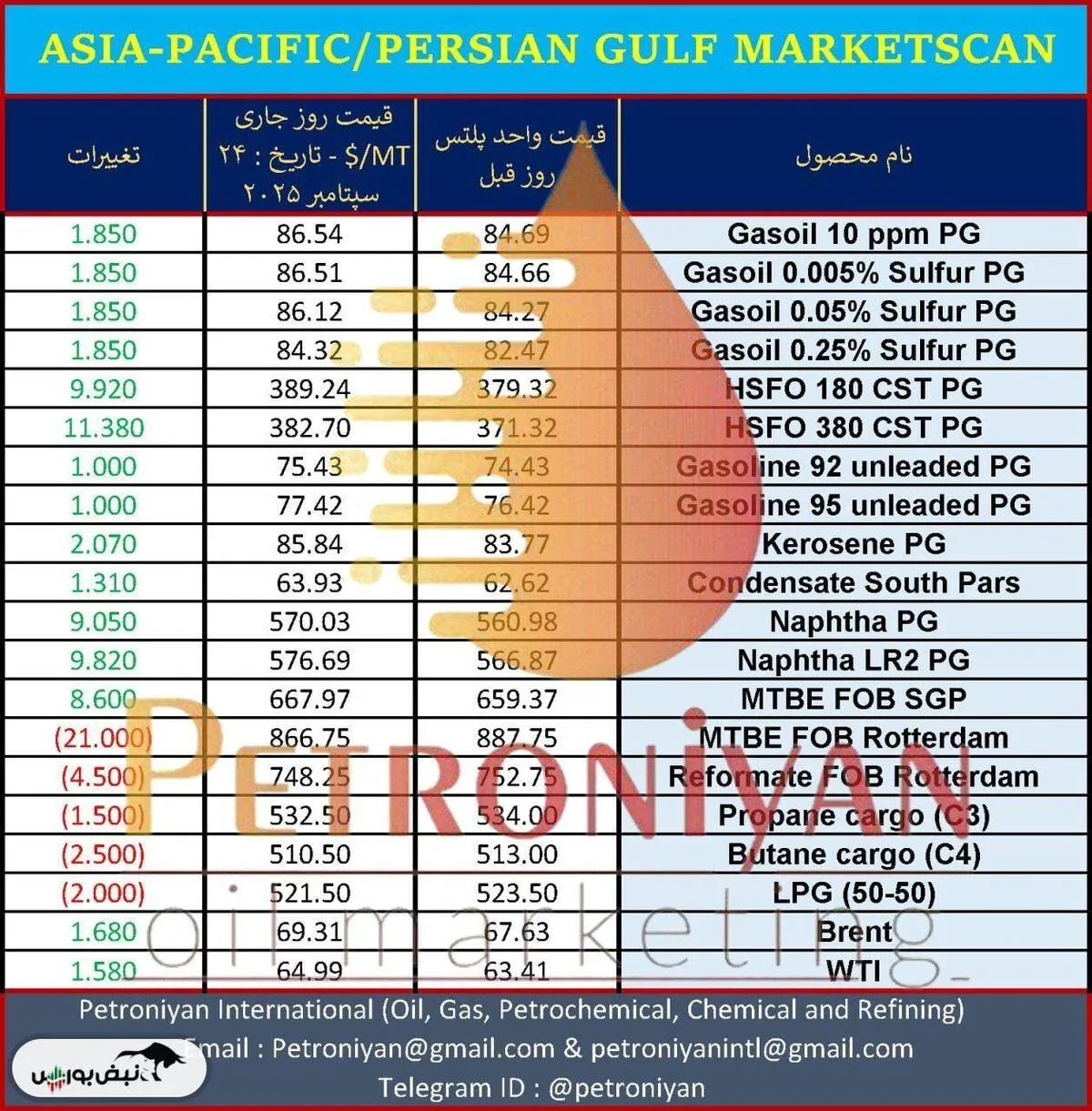 نرخ روزانهی فرآوردههای نفتی نشریه پلتس