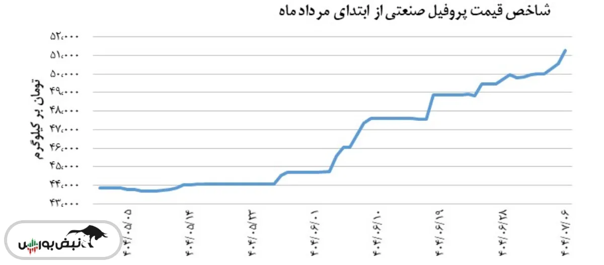 ۶ مهر، برای پروفیل صنعتی شاخص قیمتی معادل با ۵۱,۲۹۵ تومان به ازای هر کیلوگرم ثبت شد که نسبت به روز قبل، حدود ۱.۴ درصد رشد داشت.