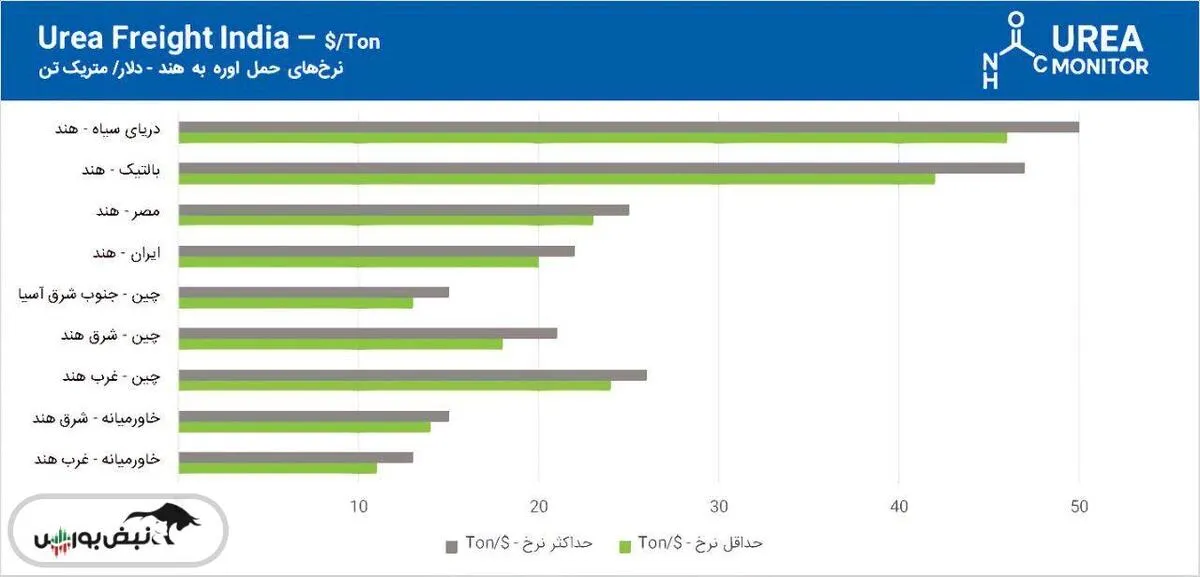 به گزارش نبض بورس، هند به‌شدت به واردات اوره وابسته است و هزینه حمل‌ونقل عامل کلیدی در قیمت تمام‌شده واردات است. خاورمیانه ارزان‌ترین و بزرگ‌ترین تأمین‌کننده اوره هند می‌باشد.