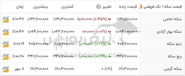سکه امامی، امروز به ۱۱۳,۱۵۰،۰۰۰ (صد و سیزده میلیون و صد و پنجاه هزار) تومان رسید.