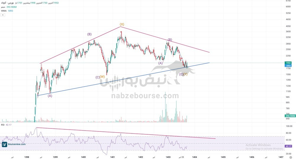 پس از بحران بزرگ بورس در تابستان ۱۳۹۹، سهم کچاد وارد یک دوره اصلاحی بلندمدت شد که در قالب یک الگوی دیامتریک سه‌گانه (WXY) شکل گرفت.