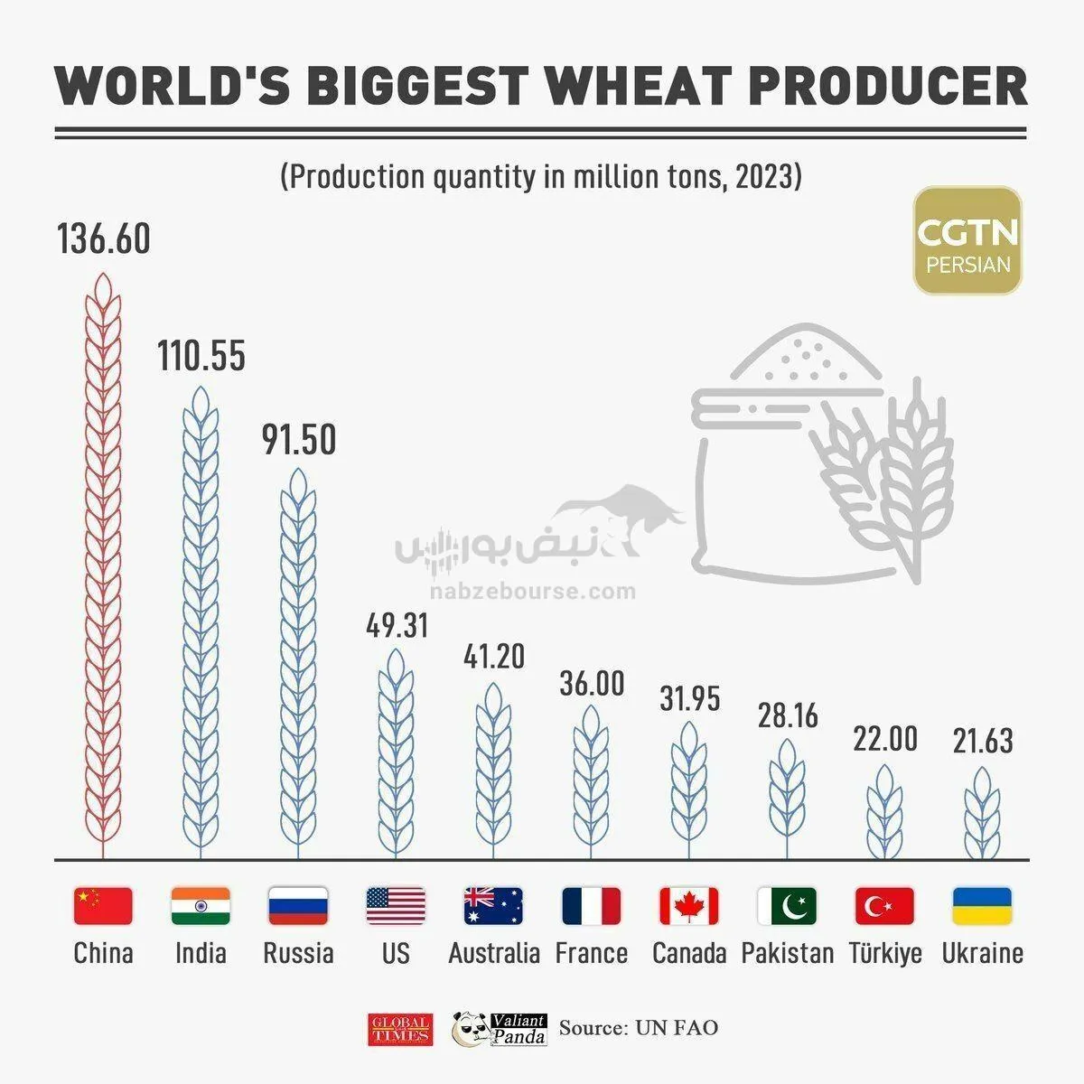 چین، هند و روسیه بزرگترین تولیدکنندگان گندم جهان هستند
