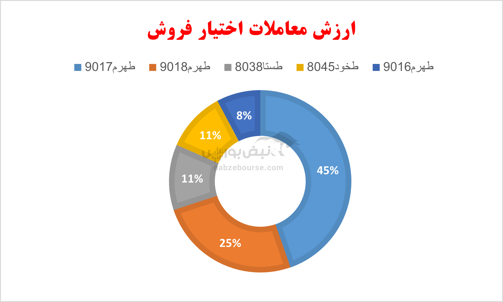 همچنین بیشترین ارزش معاملات در اختیار‌های فروش مشابه دیروز به ۵ اختیار طهرم ۹۰۱۷، طهرم ۹۰۱۸، طستا ۸۰۳۸، طخود ۸۰۴۵، طهرم ۹۰۱۶ در مجموع به مبلغ حدود ۱۰۳ میلیارد تومان مربوط بوده است.