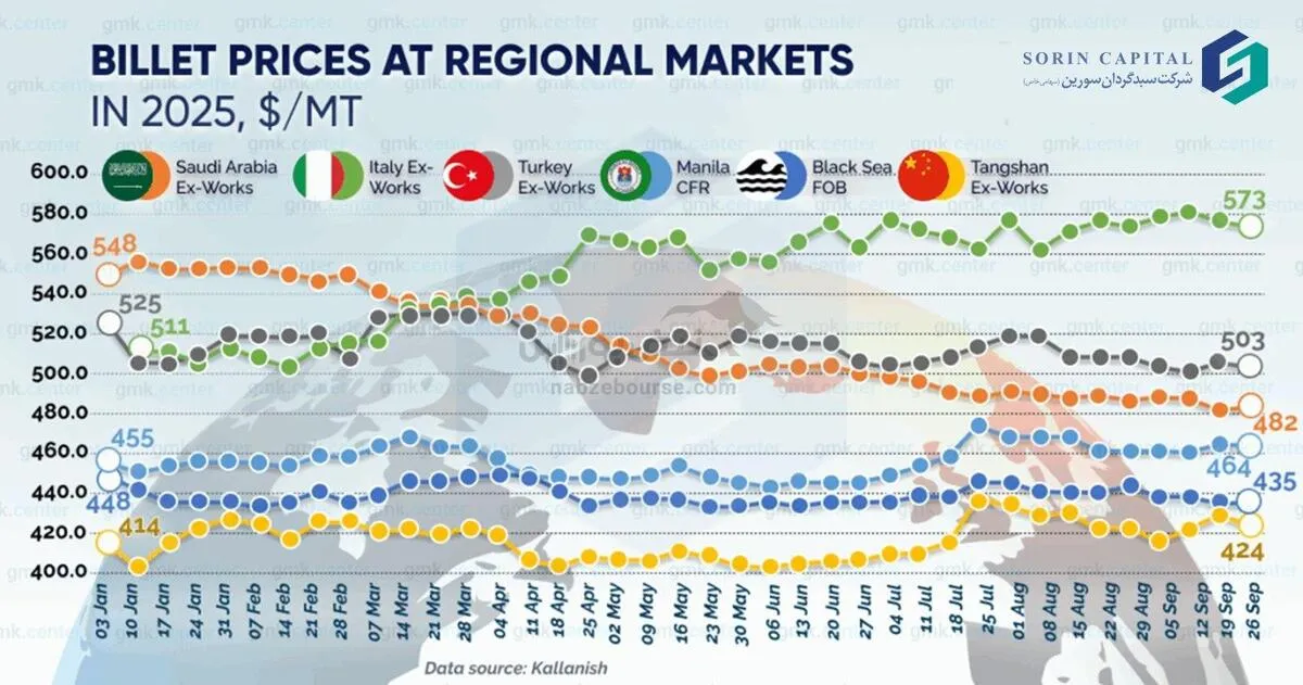 به گزارش نبض بورس، میانگین قیمت بیلت در بازار دریای سیاه طی سپتامبر با افت 8 دلاری به 435 دلار در هر تن (FOB) رسید.