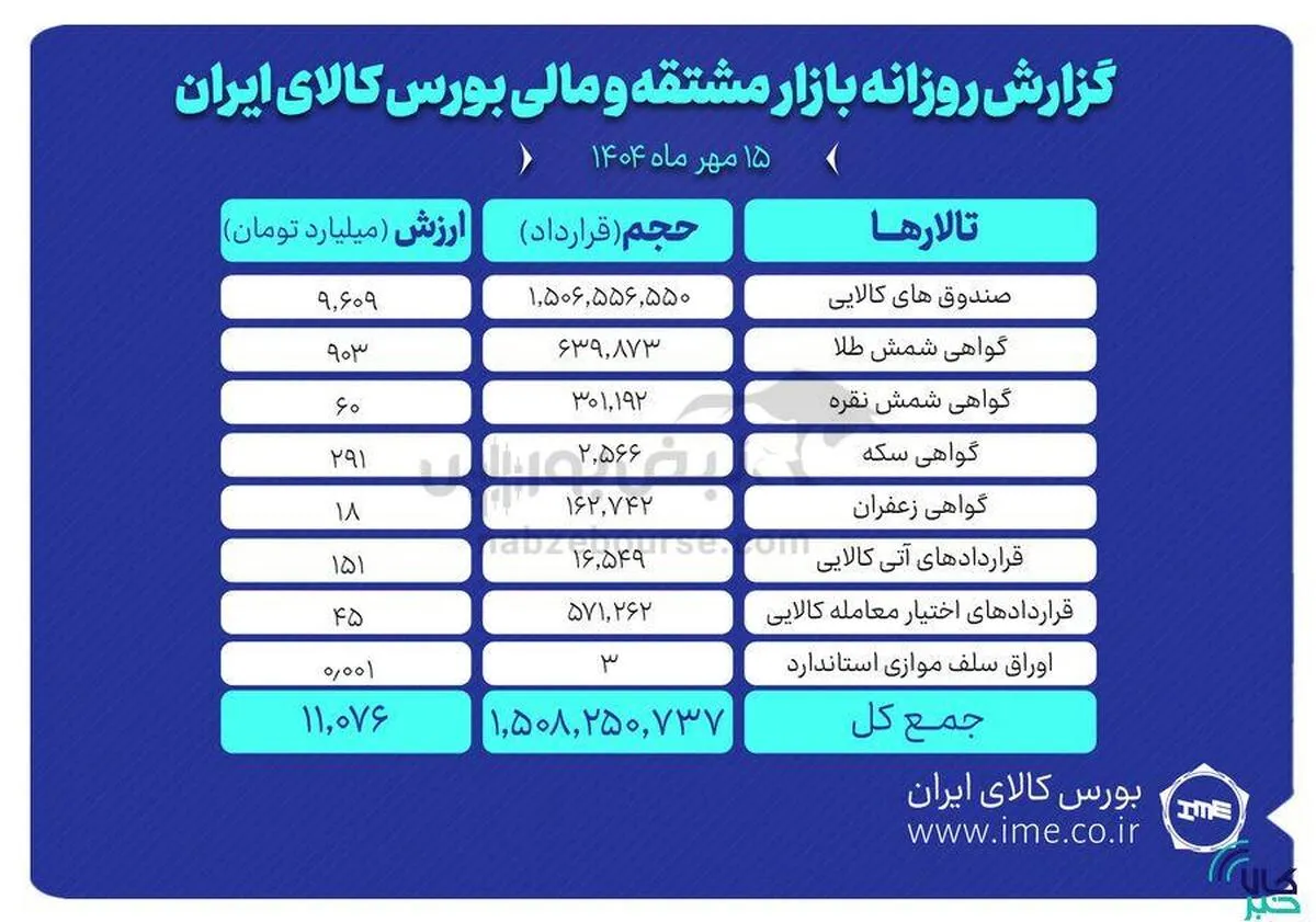 ارزش معاملات بازار مشتقه و مالی بورس کالا ۱۱ همت شد