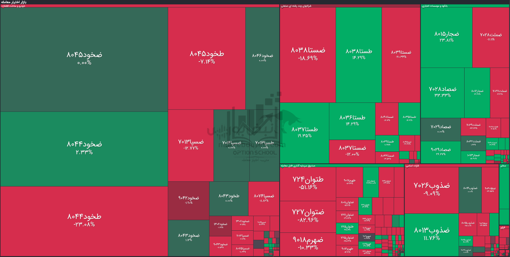 طی معاملات امروز بازار اختیار معامله، از دو قرارداد با بالاترین ارزش معاملات، قرارداد ضهرم ۹۰۱۸ با ارزش معاملات ۲۲۴ میلیارد تومان با بازدهی منفی ۱۰% و قرارداد ضخود ۸۰۴۴ با ارزش معاملات ۴۴ میلیارد تومان با بازدهی ۲% همراه شد.