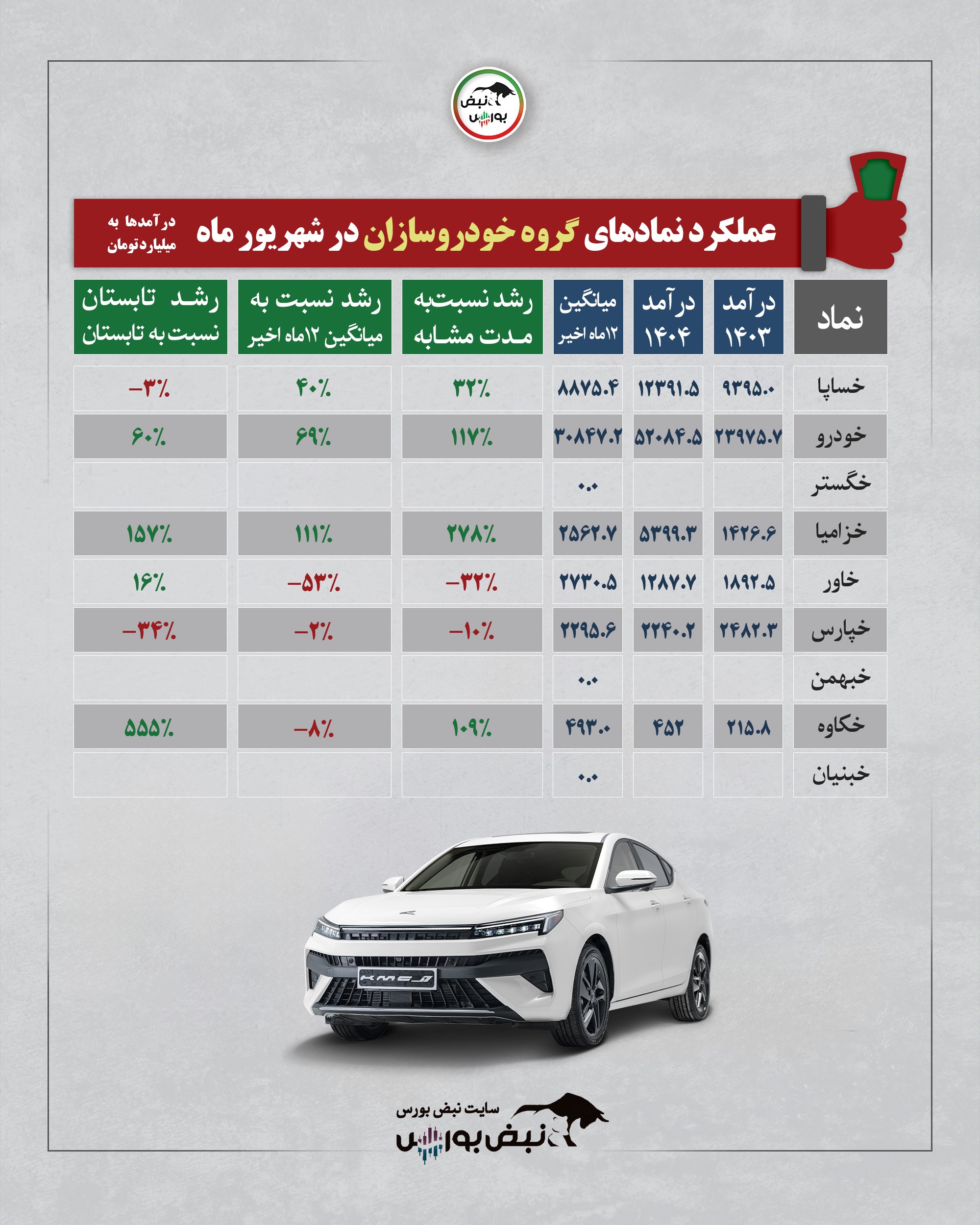 عملکرد گروه خودروسازان در یکماهه شهریور ۱۴۰۴| رشد خیرهکننده خزامیا