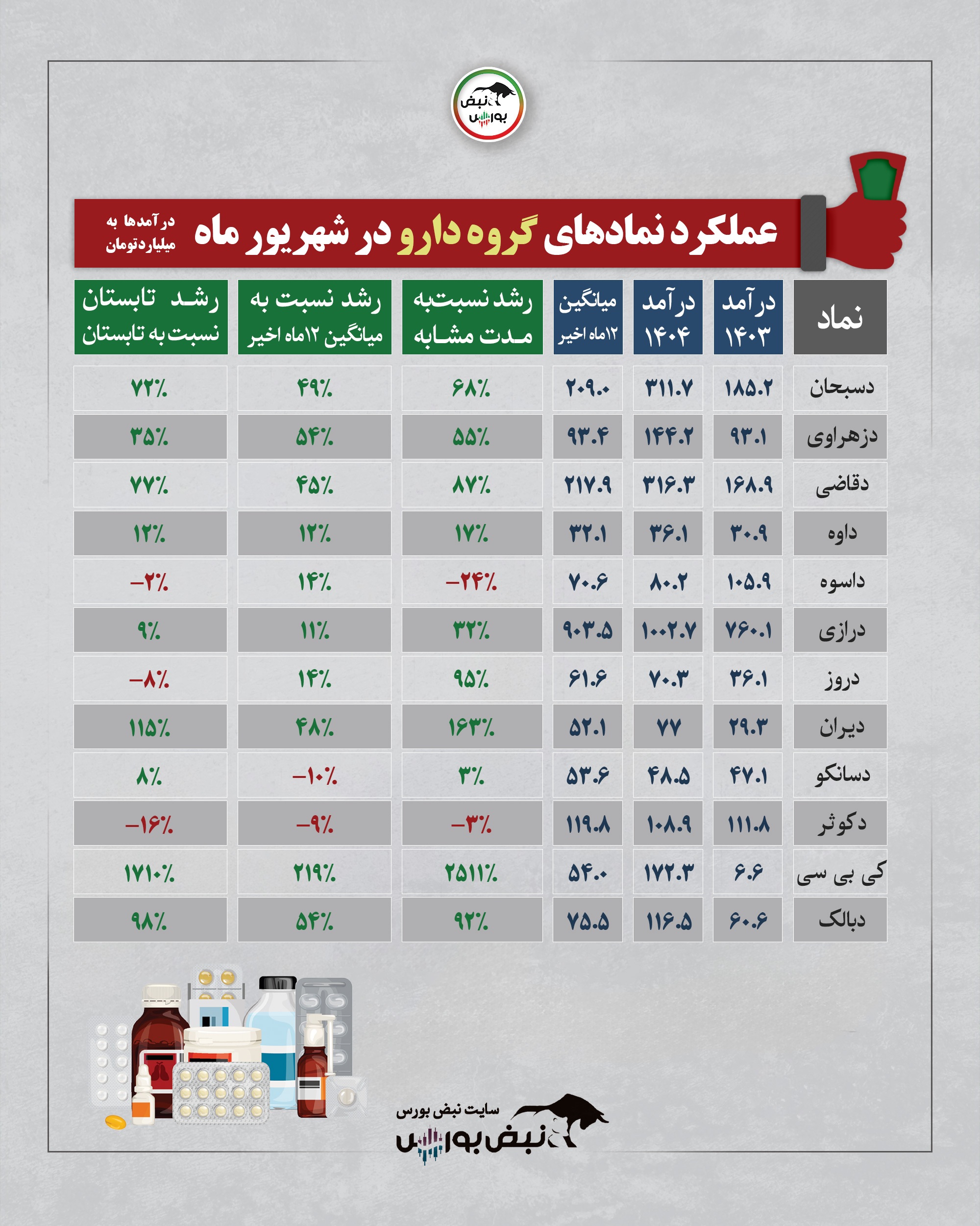 عملکرد گروه دارو در یکماهه شهریور ۱۴۰۴ | صعود ۲۵۰۰ درصدی کیبیسی