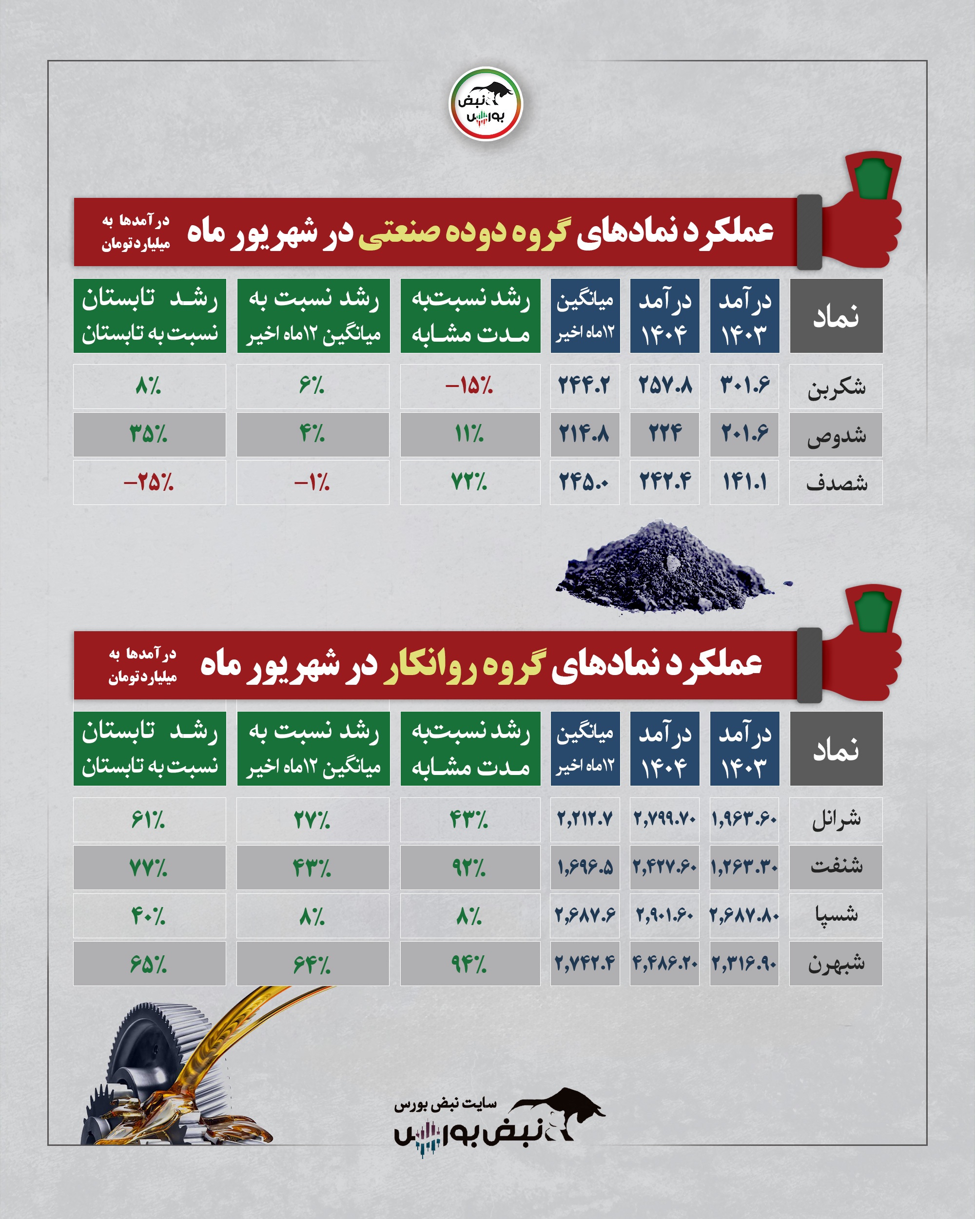 عملکرد گروه روانکار در یکماهه شهریور ۱۴۰۴| درخشش شبهرن با رشد ۹۴ درصدی