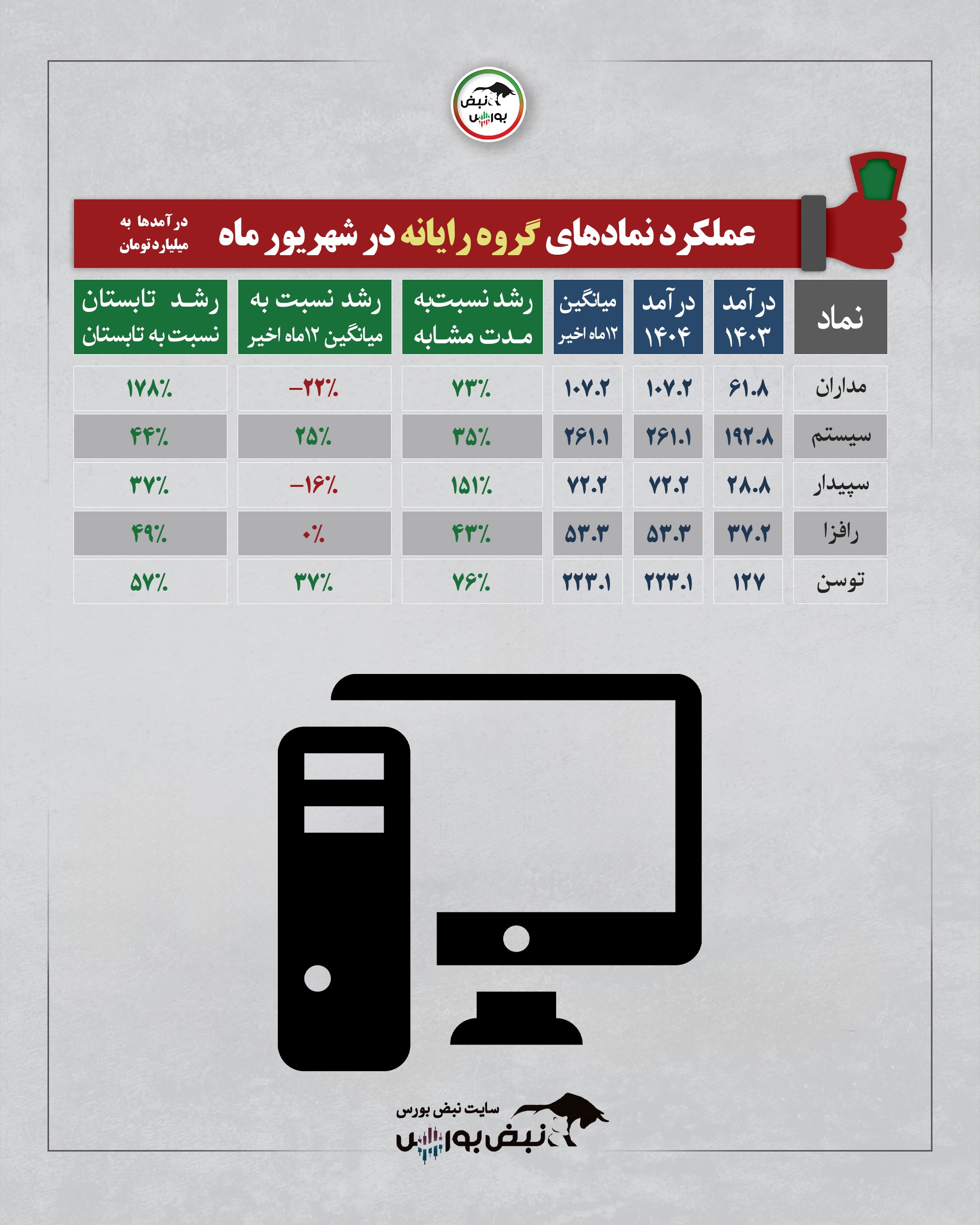 عملکرد گروه رایانه در یکماهه شهریور ۱۴۰۴| رشد ۱۵۱ درصدی سپیدار