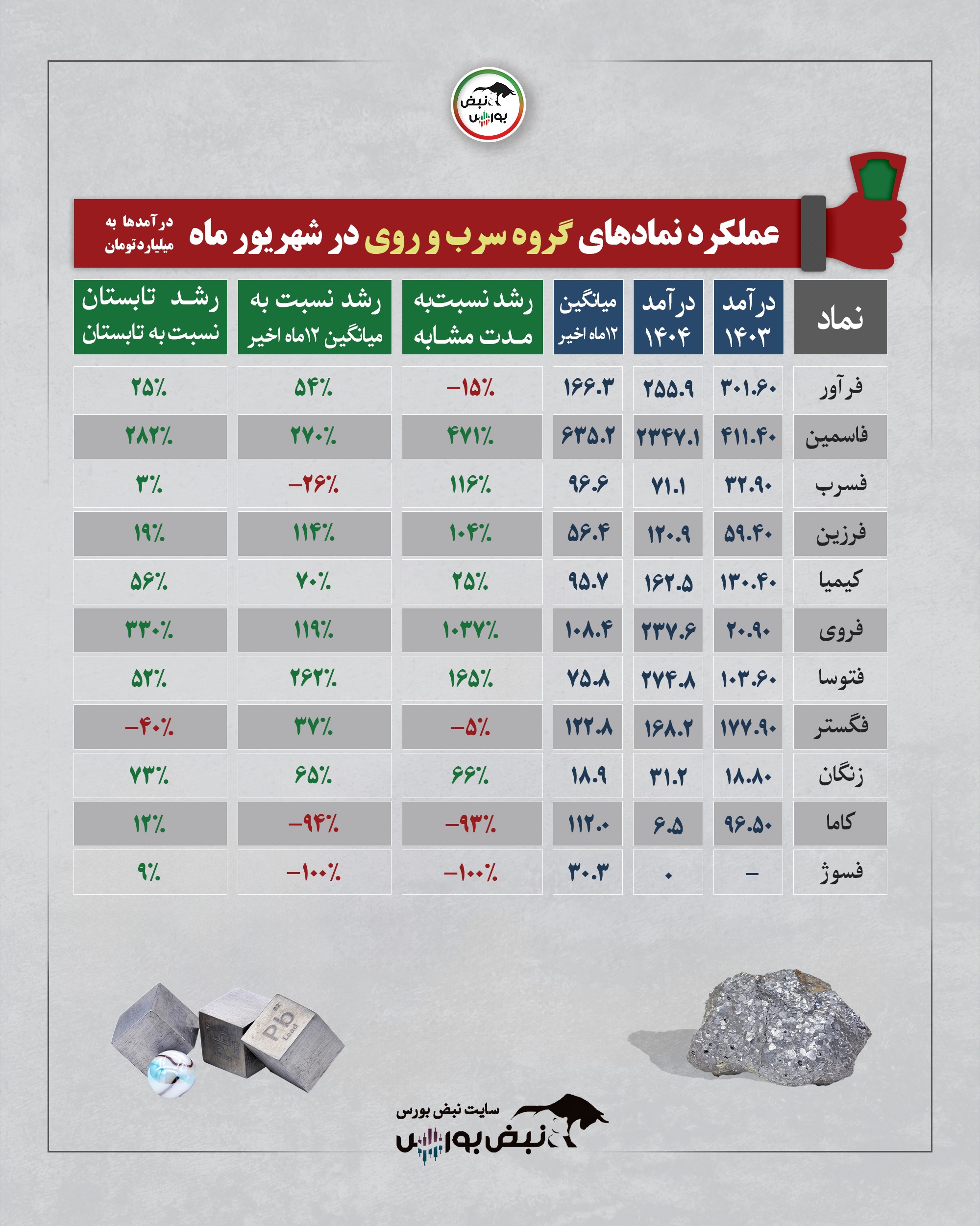 عملکرد گروه سرب و روی در یکماهه شهریور ۱۴۰۴| جهش فروی و سقوط کاما