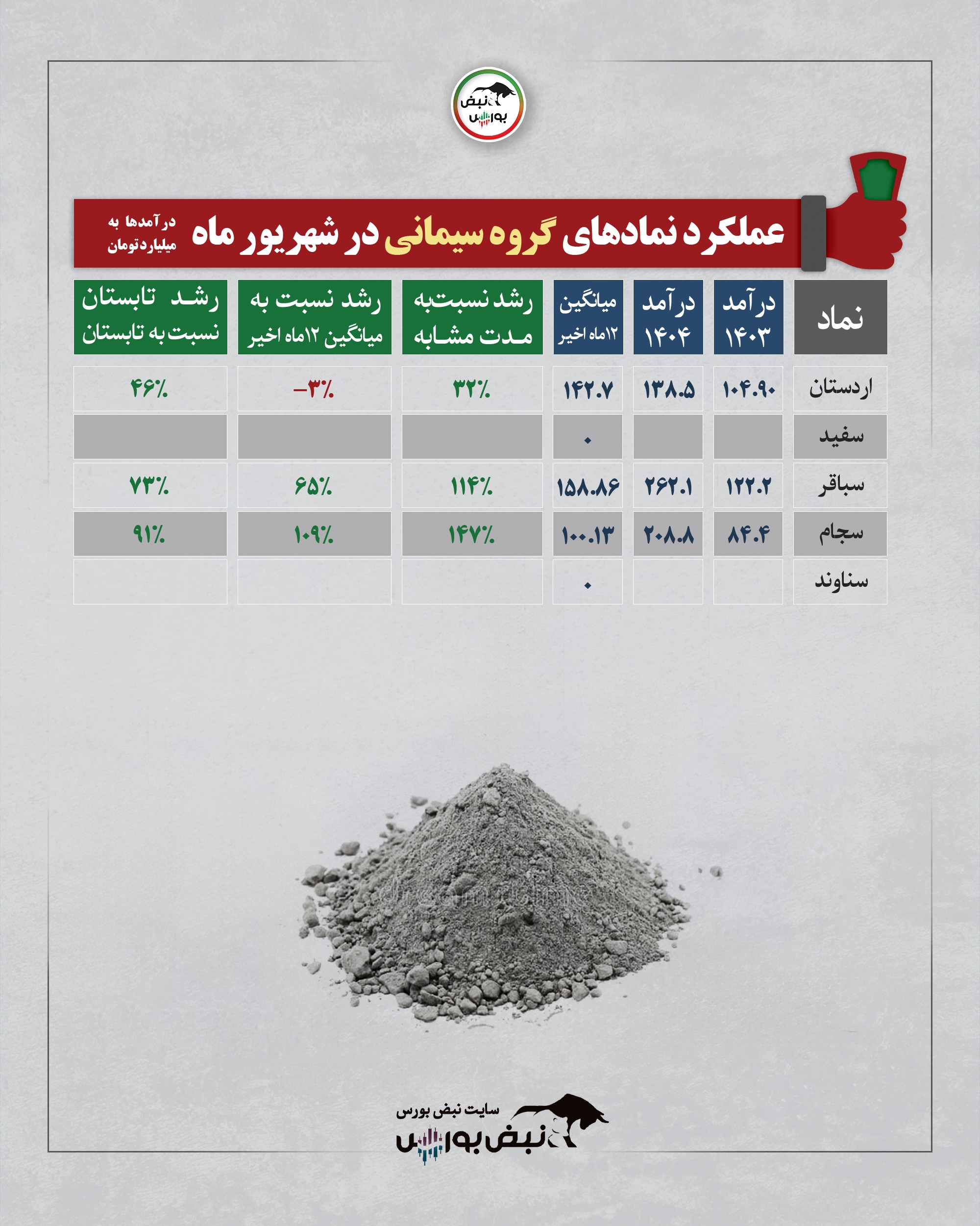 عملکرد گروه سیمانی در یکماهه شهریور ۱۴۰۴| رشد پایدار در نماد سجام
