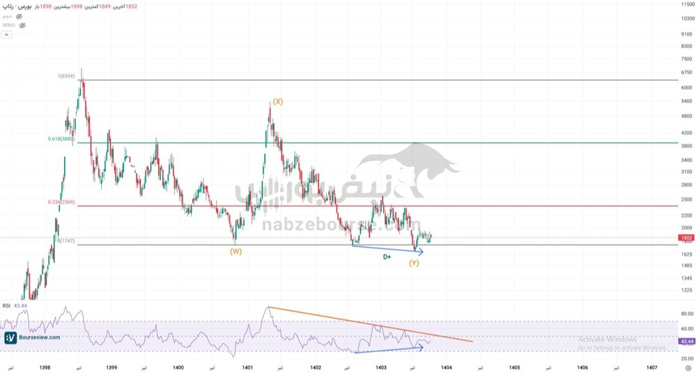 در نمای بلندمدت، رتاپ درگیر یک الگوی اصلاحی سهوجهی (WXY) بوده است که طی چند سال اخیر بخش عمدهای از انرژی صعودی سهم را جذب کرده است.
