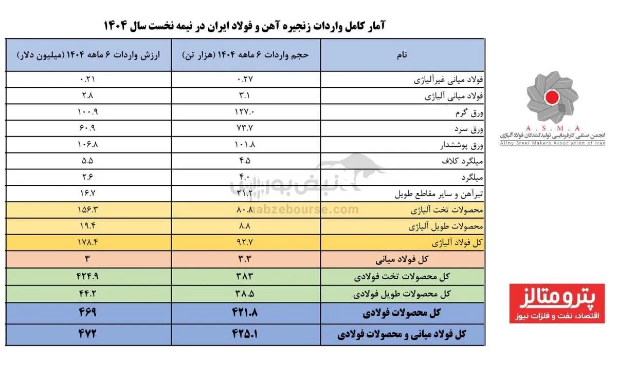 انجمن فولاد آلیاژی آمار کامل واردات زنجیره آهن و فولاد ایران را منتشر کرد