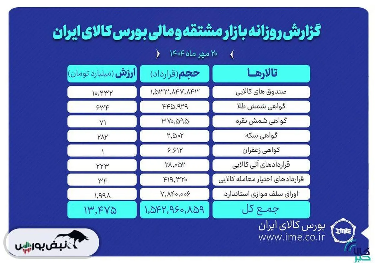 ارزش معاملات بازار مشتقه و مالی بورس کالا ۱۳ همت شد
