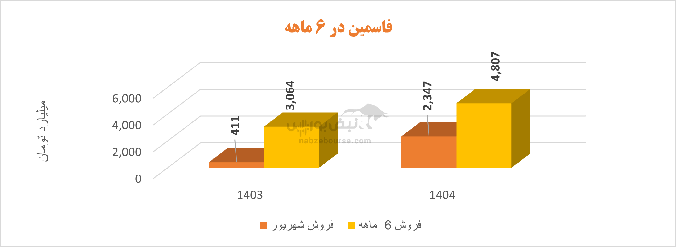 فاسمین در ۶ ماهه منتهی به شهریور ۱۴۰۴، ۴۸۰۰ میلیارد تومان فروش داشت که ۵۷% نسبت به دوره مشابه قبل رشد داشت. بهنظر میرسد عمده رشد فروش به افزایش نرخ فروش مربوط است، با این حال مهم‌تر از این رشد فروش کنترل موثر هزینه هاست. در خصوص محصول شمش روی، مقدار تولید ۱۷ درصد کاهش و مقدار فروش داخلی ۲۰% افزایش داشته است. اما میزان فروش صادراتی با افت ۵۰ درصدی مواجه شد.