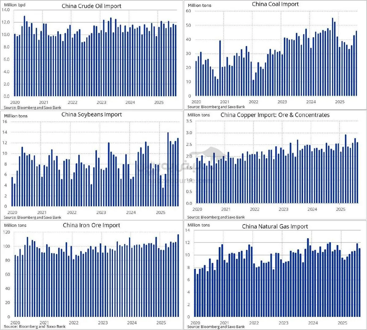 در مقابل، واردات سنگ‌آهن با رشد ۱۱.۷٪ به ۱۱۶.۳ میلیون تن رسیده و بالاترین سطح تاریخی خود را ثبت کرده است. همچنین واردات مس ۶٪ و دانه سویا ۱۳.۲٪ افزایش یافته است.