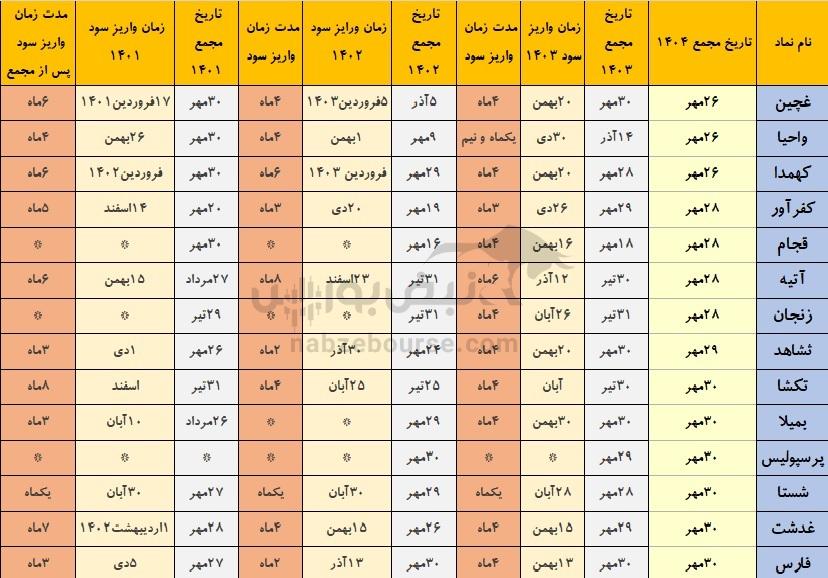 • اکثر نمادها سود نقدی را بین یک تا چهار ماه پس از برگزاری مجمع پرداخت کرده‌اند.