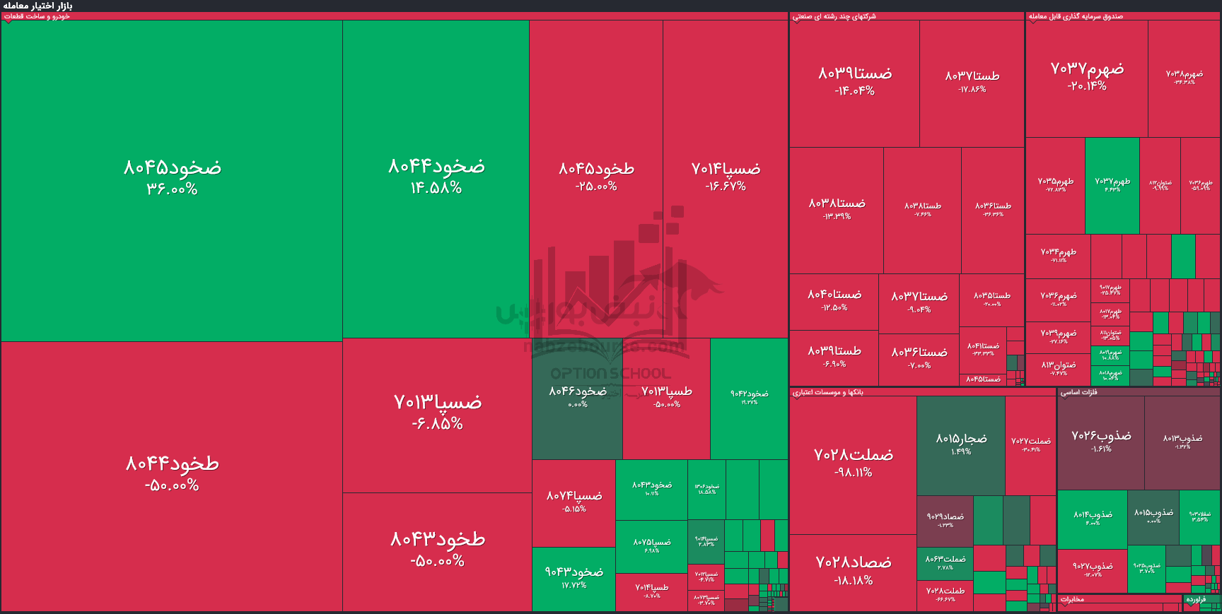 طی معاملات امروز بازار اختیار معامله، از دو قرارداد با بالاترین ارزش معاملات، قرارداد ضهرم ۷۰۳۷ با ارزش معاملات ۱۶۷ میلیارد تومان با بازدهی منفی ۲۰% و قرارداد ضهرم ۷۰۳۶ با ارزش معاملات ۴۷ میلیارد تومان با بازدهی منفی ۱۱% همراه شد.
