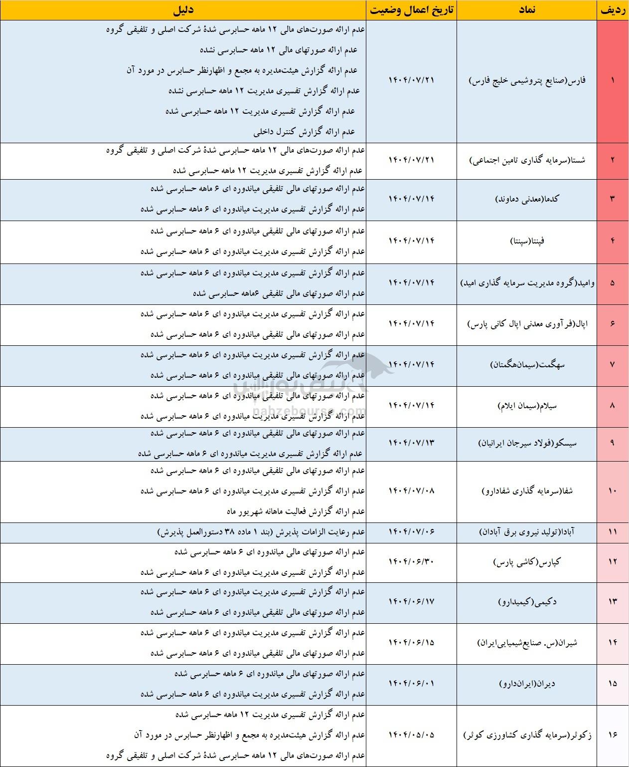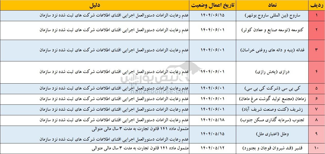 ۲۶ نماد وارد مرحله هشدار شدند | نمادهایی که یک قدم تا تعلیق فاصله دارند