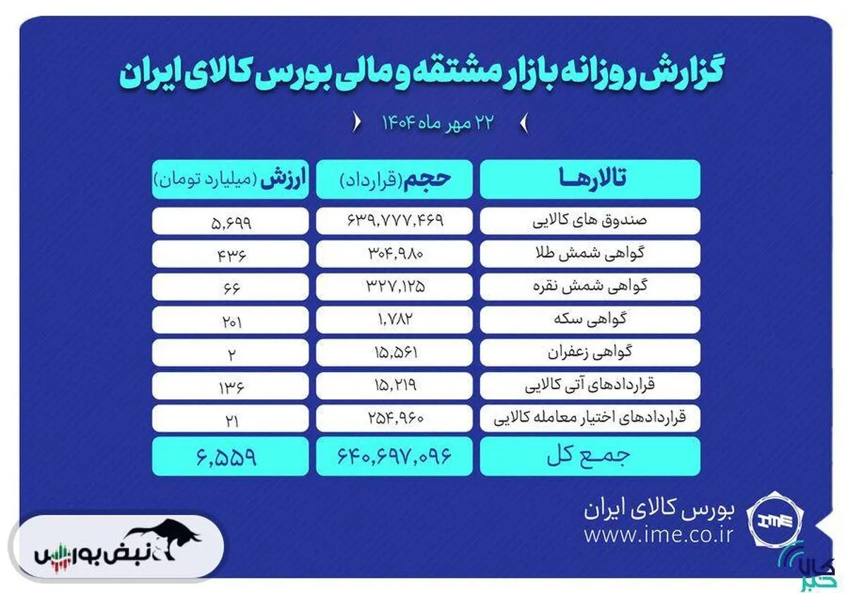 ارزش معاملات بازار مشتقه و مالی بورس کالا ۶.۵ همت شد