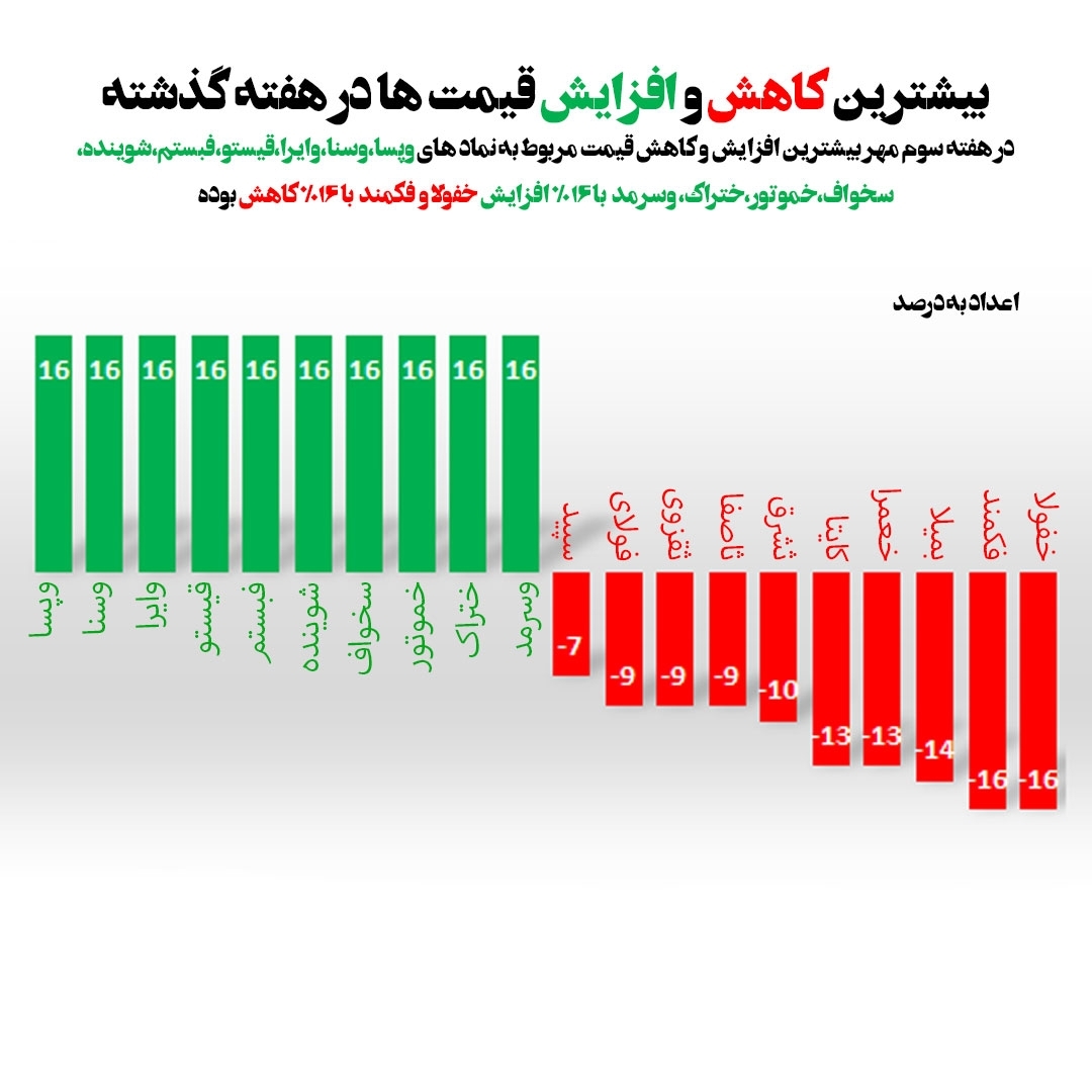 • خفولا و فکمند با ۱۶ درصد افت بیشترین کاهش قیمت را تجربه کردند.