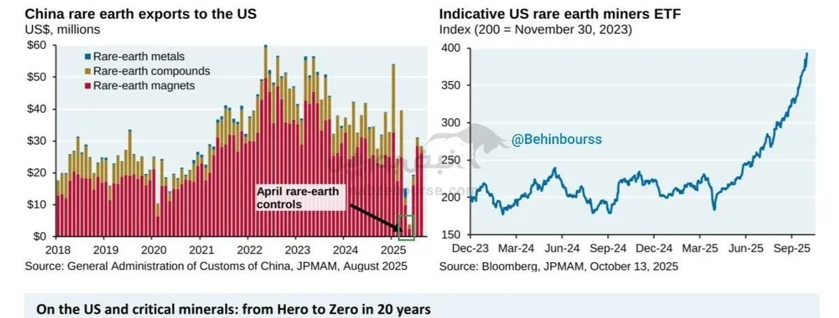 به گزارش نبض بورس، صادرات عناصر نادر زمین چین به آمریکا در مقایسه با ۲۰۲۲-۲۰۲۳ به شدت کاهش یافته است.