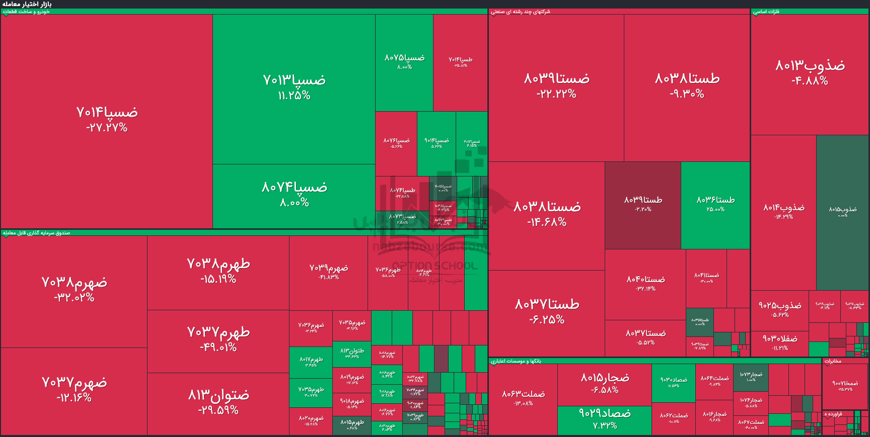 همچنین در نماد‌های با ارزش معاملات بالای یک میلیارد تومان طهرم ۹۰۱۹, طهرم ۹۰۱۸, طهرم ۹۰۲۰, طهرم ۸۰۱۹,ضسپا ۷۰۱۳ بالاترین نوسان مثبت روزانه به ثبت رساندند و همچنین طهرم ۷۰۳۷, ضهرم ۷۰۳۹, ضهرم ۸۰۲۲, ضستا ۸۰۴۰, ضهرم ۷۰۳۸ بالاترین درصد منفی نوسان روزانه را به خود اختصاص دادند.