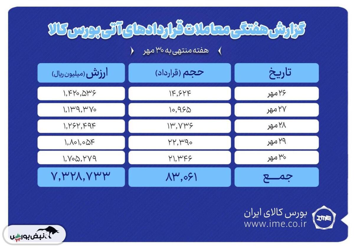 آمار معاملات فیزیکی بورس کالا امروز شنبه ۰۳ آبان | پیشتازی وکغدیر، سآبیک، شپدیس و فولاد در معاملات امروز