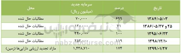 سرمایه شرکت در ابتدای تأسیس تنها ۱۰ میلیون تومان بود که طی چند مرحله افزایش سرمایه به ۱۴۳.۹ میلیارد تومان رسیده است.