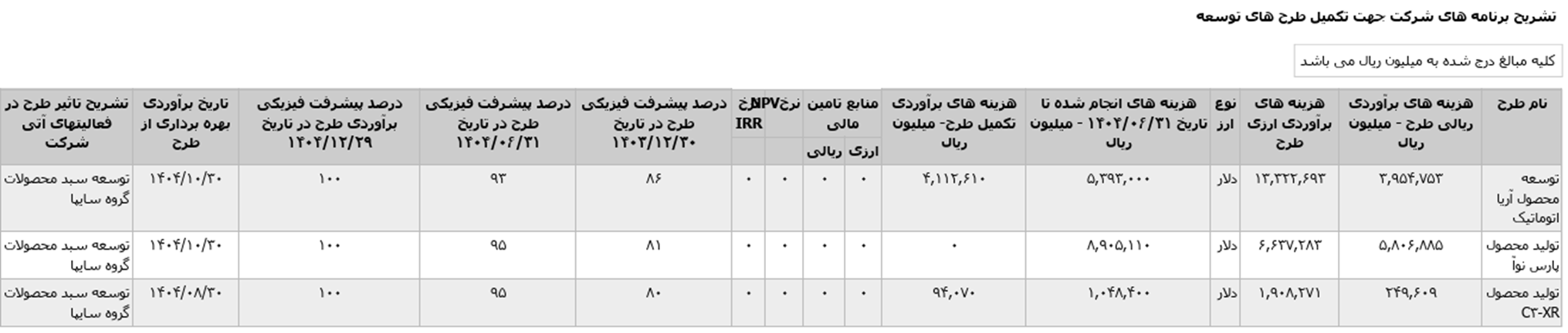 توضیحات سایپا در خصوص جزئیات منابع تامین مالی شرکت در پایان دوره: شرکت سایپا برنامه اخذ تحصیلات با بانکهای مختلف را در دستور کار دارد که کنار آن به دنبال کاهش نرخ سود تاثیرات دریافتی نیز است.