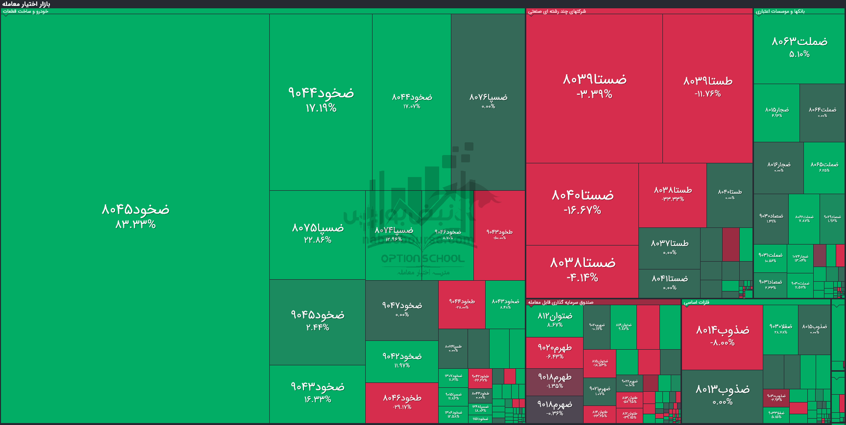 گزارش بازار آپشن چهارشنبه ۷ آبان ۱۴۰۴ | ضخود ۸۰۴۵ در صدر جدول بازدهی پرمعاملهها