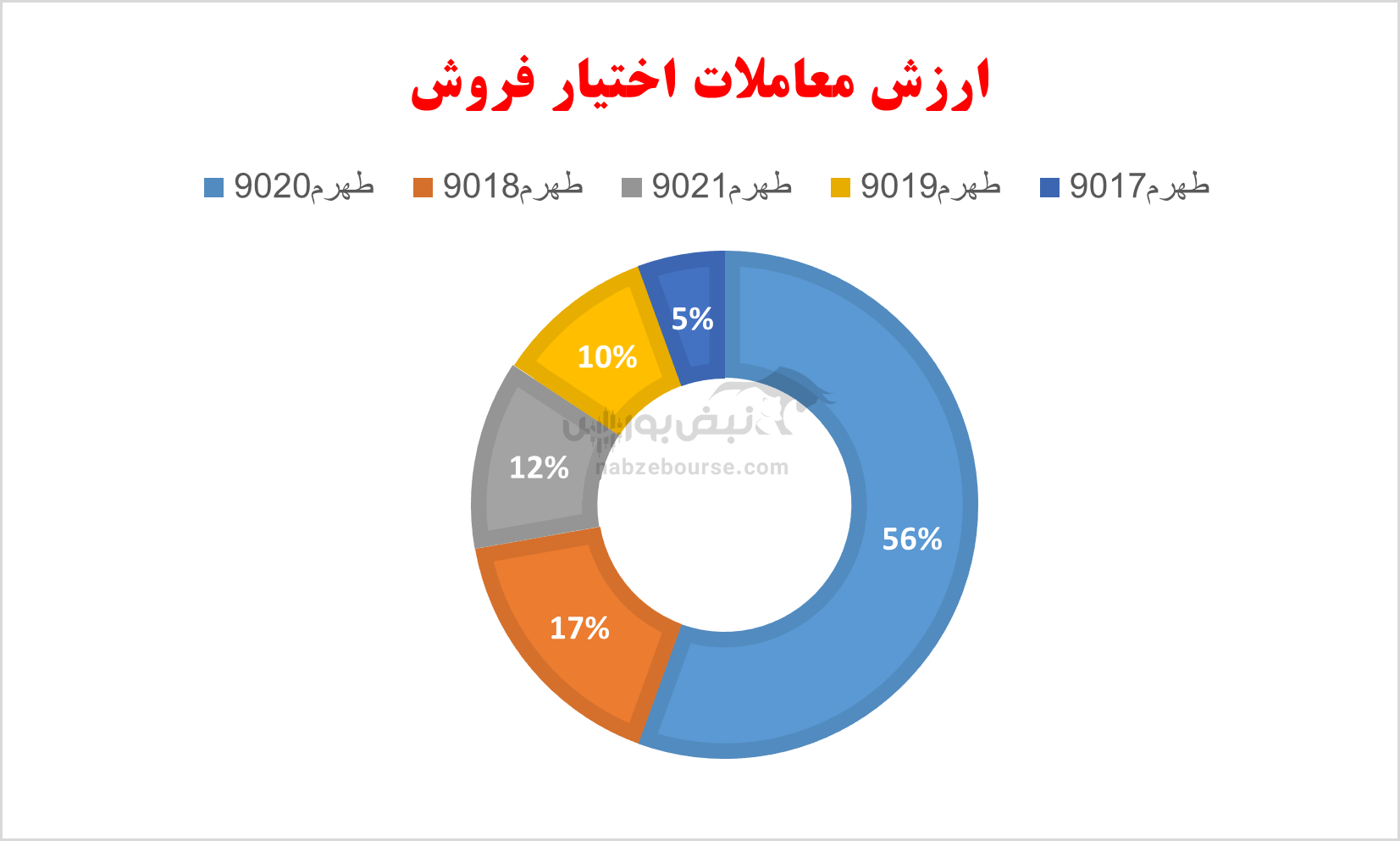 همچنین بیشترین ارزش معاملات در اختیارهای فروش مشابه دیروز به ۵ اختیار طهرم ۹۰۲۰, طهرم ۹۰۱۸, طهرم ۹۰۲۱, طهرم ۹۰۱۹, طهرم ۹۰۱۷ در مجموع به مبلغ حدود ۱۰۸ میلیارد تومان مربوط بوده است.