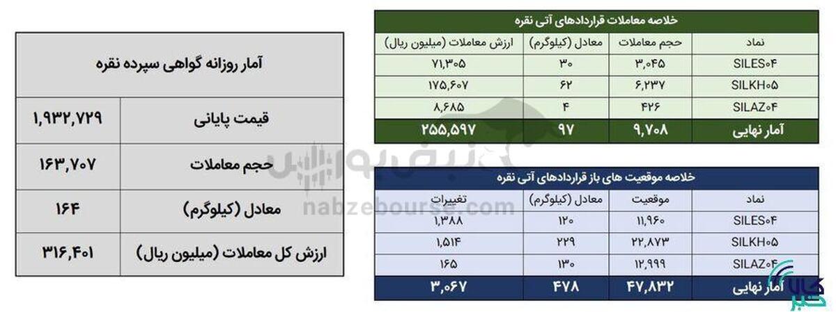◽️حجم معاملات: ۳۵۰ هزار و ۵۸۰ گواهی (معادل ۳۵ کیلوگرم شمش طلا)