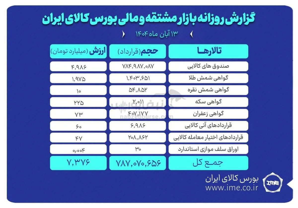 ارزش معاملات بازار مشتقه و مالی بورس کالا ۷.۳ همت شد