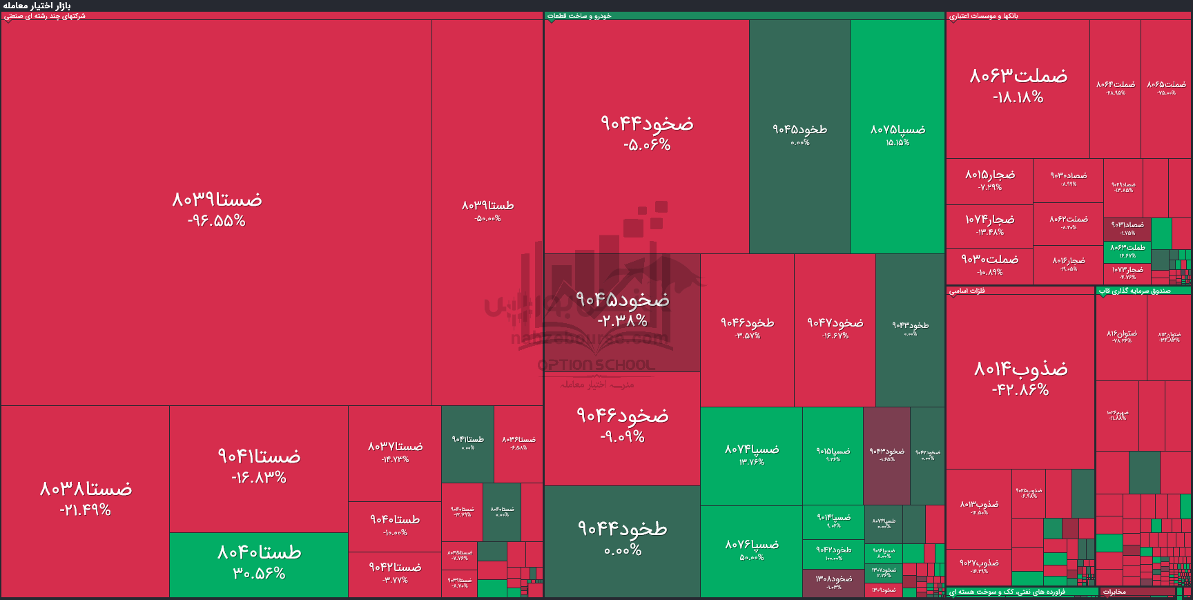 همچنین در نمادهای با ارزش معاملات بالای یک میلیارد تومان طستا ۸۰۴۰, ضشنا ۸۰۵۲, ضسپا ۸۰۷۵, ضسپا ۸۰۷۴, ضسپا ۹۰۱۵ بالاترین نوسان مثبت روزانه به ثبت رساندند و همچنین ضستا ۸۰۳۹, طستا ۸۰۳۹, ضذوب ۸۰۱۴, ضهرم ۸۰۲۰, طهرم ۹۰۱۸ بالاترین درصد منفی نوسان روزانه را به خود اختصاص دادند.