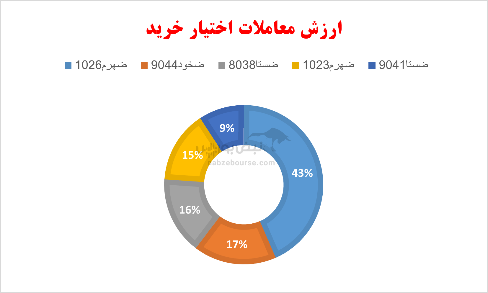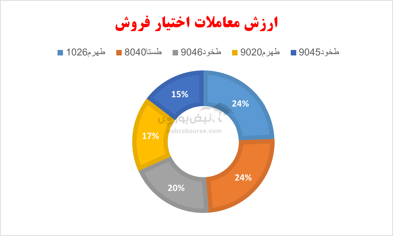 همچنین بیشترین ارزش معاملات در اختیارهای فروش مشابه دیروز به ۵ اختیار طهرم ۱۰۲۶, طستا ۸۰۴۰, طخود ۹۰۴۶, طهرم ۹۰۲۰, طخود ۹۰۴۵ در مجموع به مبلغ حدود ۴۱ میلیارد تومان مربوط بوده است.