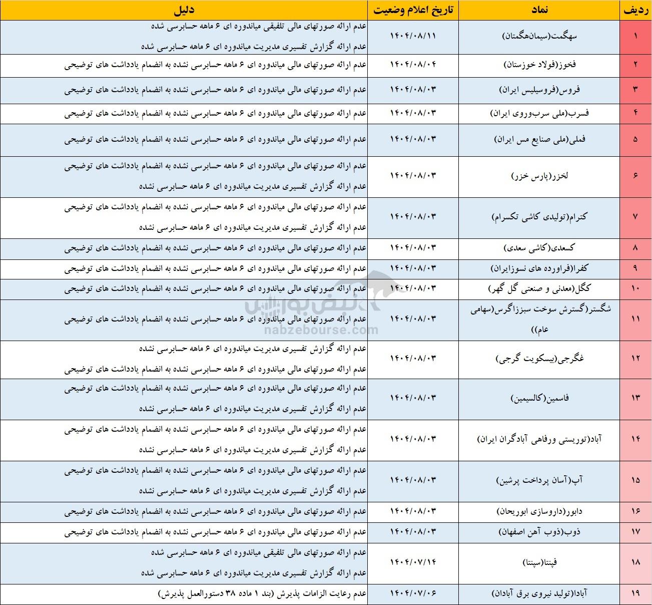کدام نمادها در آستانه تعلیق هستند؟ | فهرست کامل ۳۵ نماد بورسی و فرابورسی مشمول فرآیند تعلیق