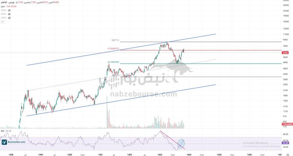 نکته مهم در بررسی نمودار فباهنر، شکست روند نزولی در اندیکاتور RSI است. این اتفاق، نخستین سیگنال از تغییر فاز حرکتی سهم محسوب می‌شود.