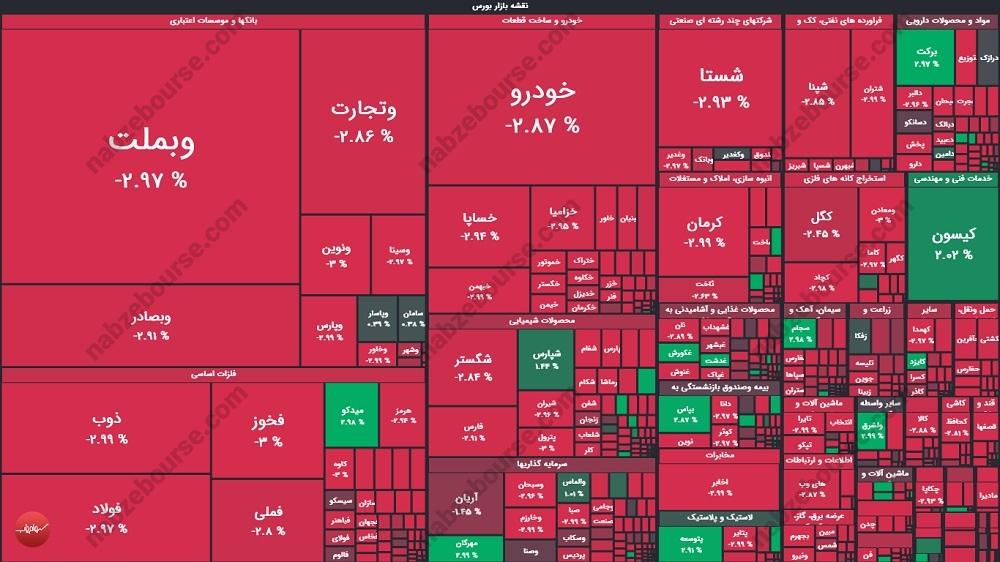 شاخص کل: 3 میلیون و 151 هزار و 329 واحد | کاهش 72701 واحدی | معادل منفی 2.26 درصد