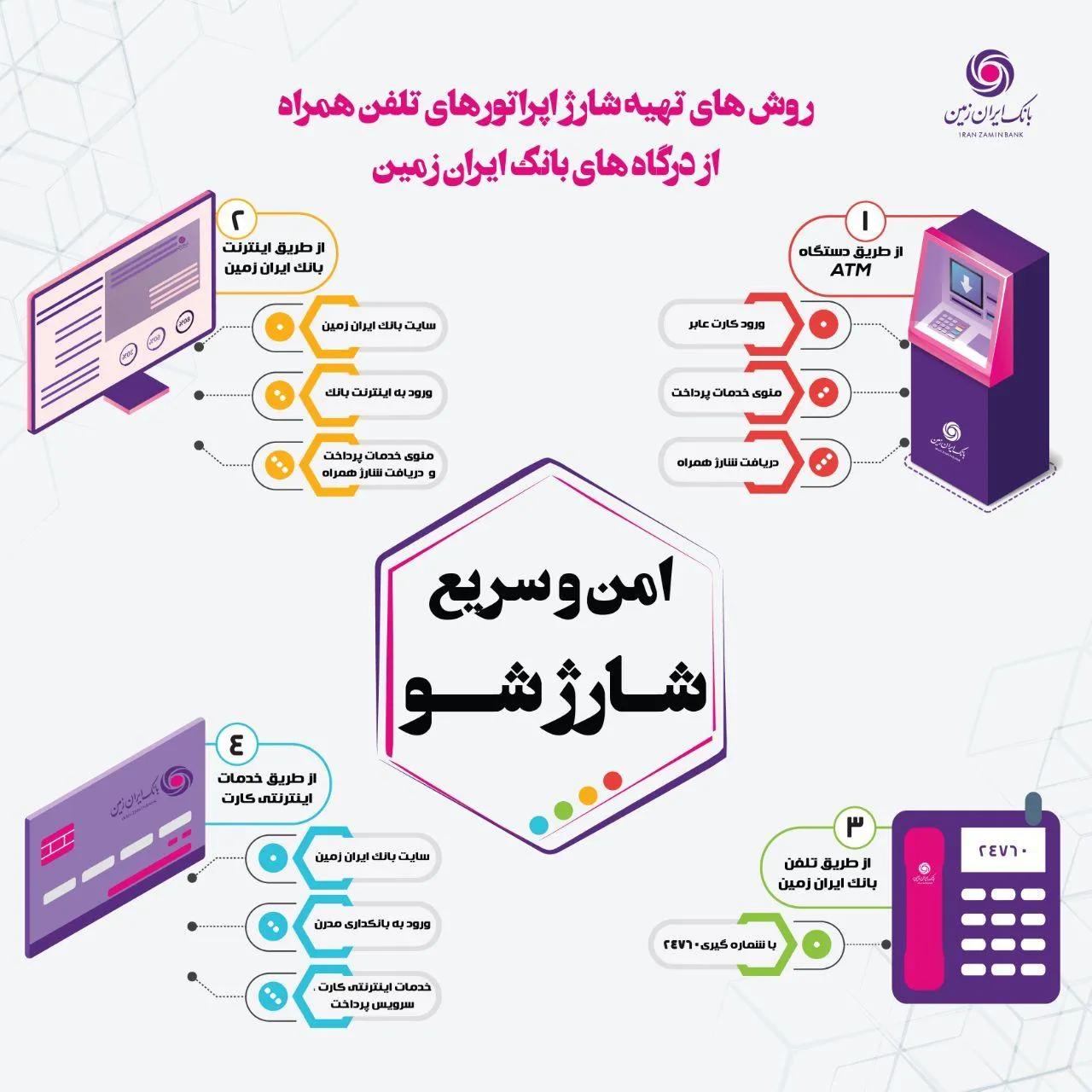 روشهای تهیه شارژ اپراتورهای تلفن همراه از درگاههای بانک ایران زمین