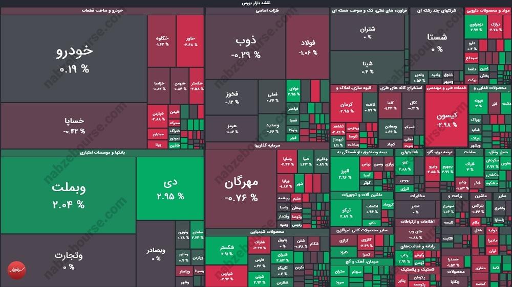 شاخص کل: 3 میلیون و 98 هزار و 922 واحد | کاهش 8040 واحدی | معادل منفی 0.26 درصد
