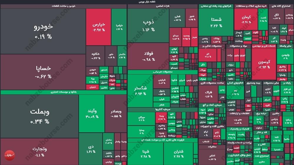 شاخص کل: 3 میلیون و 105 هزار و 364 واحد | افزایش 6600 واحدی | معادل مثبت 0.21 درصد