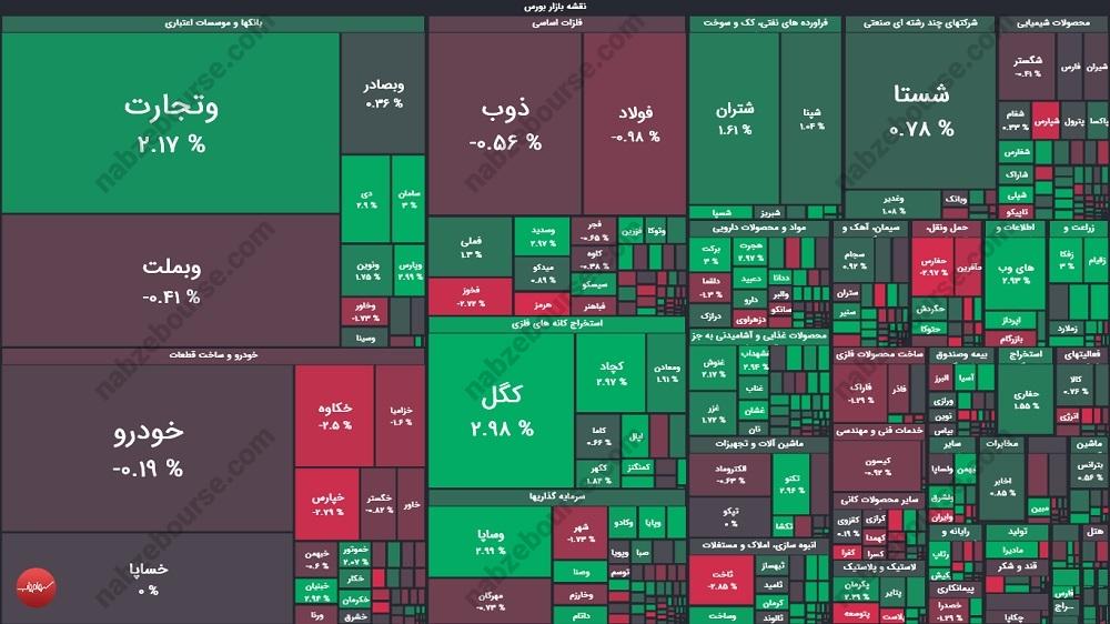 شاخص کل: 3 میلیون و 174 هزار و 551 واحد | افزایش 34962 واحدی | معادل مثبت 1.11 درصد