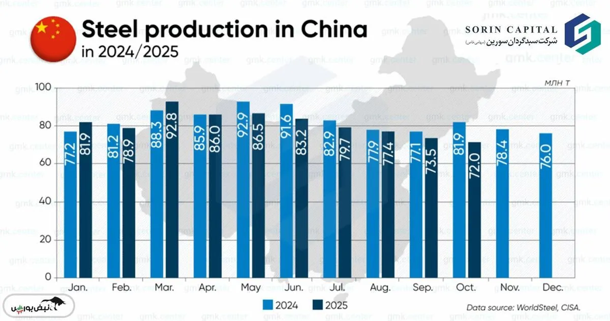 به گزارش نبض بورس، در ماه گذشته تولید فولاد چین به 72 میلیون تن رسید که نسبت به مدت مشابه سال قبل 12 درصد کاهش یافته.